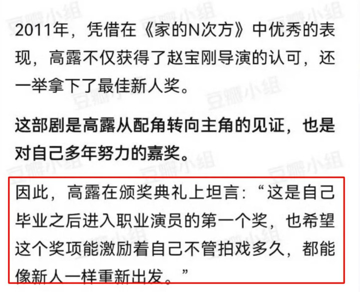 那一年,高露28岁,凭实力拿下最佳新人奖。